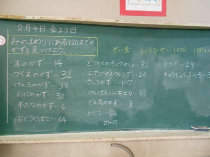 教室の中で120までの数を探しました。