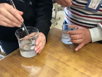 今日はその2つの実験を行いました。結果が意外だったようで,驚きの声があがりました!