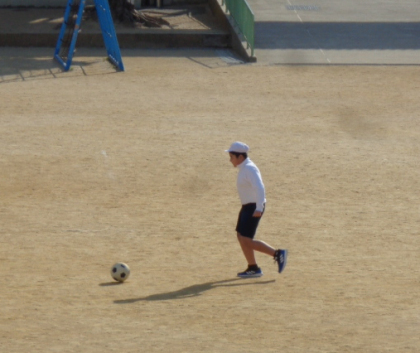 サッカーをしました。2回目は上手くシュートできました。