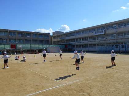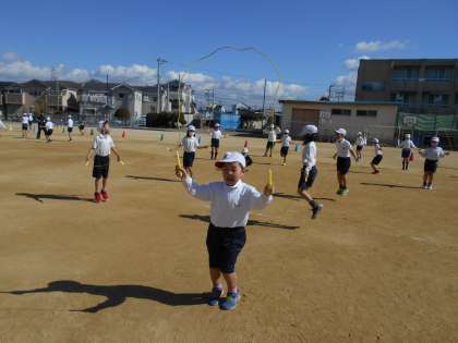 なわとびでいろいろな跳び方を楽しんでいます。