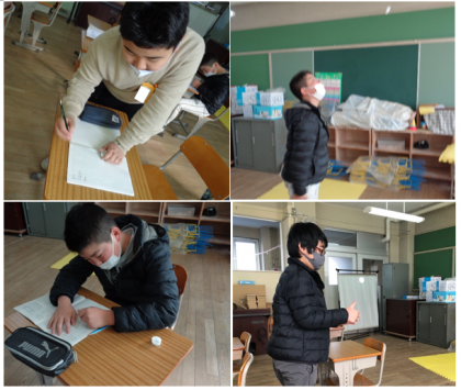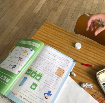 キャップの蓋を投げて、表、裏、横向きのどれになるか実際に調べ、確率を考えました。