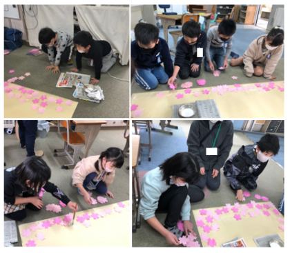 ハンドベルの練習は、他のチームと担当パートを繋げて演奏しました。最後まで何とか演奏できたのが嬉しくて、「おぉ〜!」と大盛り上がりでした。後半は卒業掲示の製作、6年生への呼びかけを考えました。