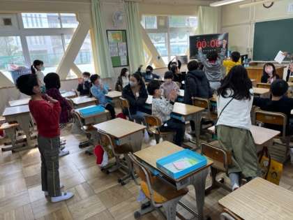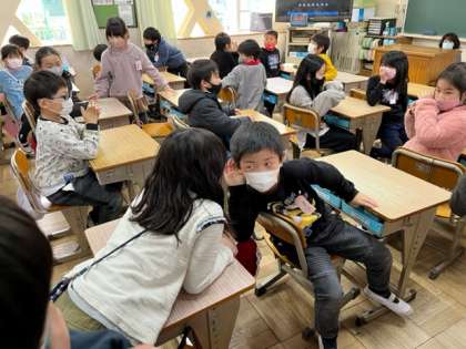 昼休みに,みんな遊びで,伝言ゲームを楽しんでいました!