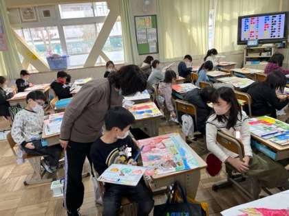 「泣いた赤おに」のお話の絵が完成に近づいています!