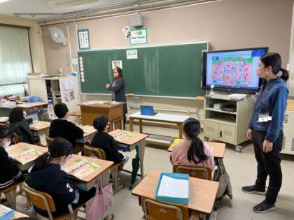 ネイティブスピーカーの先生と楽しそうに外国語活動をしていました!