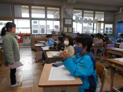 聞く人も,聞き方名人を意識して聞いていました。友だちの発表のいいところも伝えあいました。
