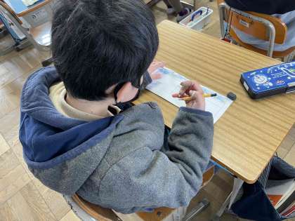 漢字テストに向けて学習をしたり,図工の作品の紹介文を書いたりしました。