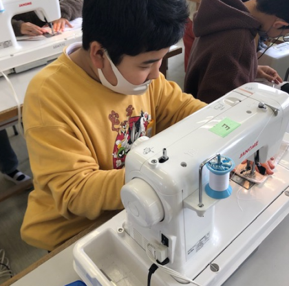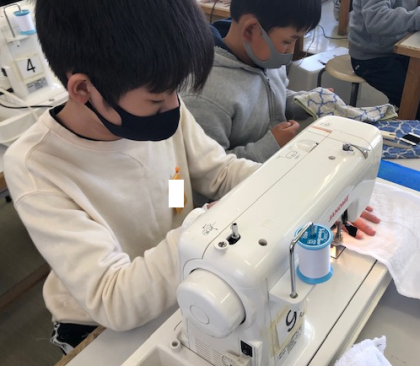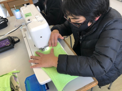 雑巾をつくっています。手縫いの部分は、デザインを工夫していました。