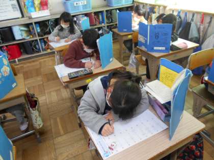 春休みまでにならう漢字の25問テストをしました。がんばったので,結果を楽しみにしている人がたくさんいました。
