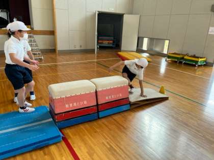 忍者になって,跳び箱にとび乗ったり,とび降りたりしていました!