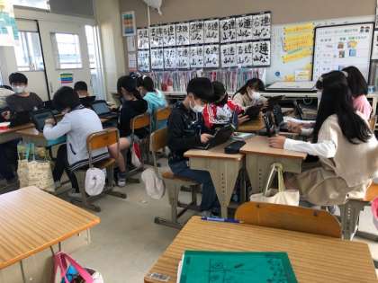 国語「提案しよう,言葉とわたしたち」では,普段つかっている言葉の使い方について課題とその解決方法を考えるスピーチを行います。解決方法をより分かりやすく伝えるための材料として,Formsでアンケートをとりました。