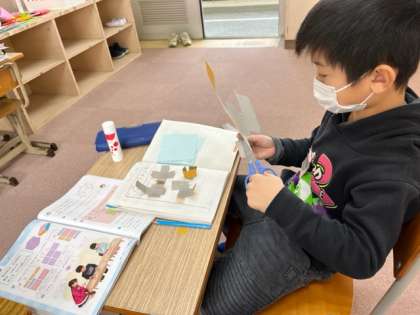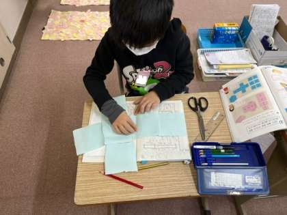 面を組み立てて作った箱を切り開いて展開図を作りました!