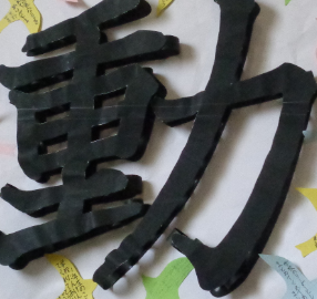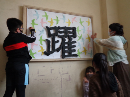 卒業製作を掲示しています。迫力があってかっこいい!まさに躍動しています!