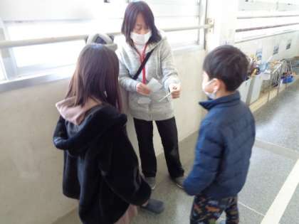 原稿が完成したチームが,休み時間に先生に発表練習を聞いてもらっていました。