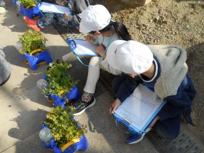 ★来週14日(月)に植木鉢を持ち帰る予定です。土や野菜が入ったままの重たい状態ですので,ご心配であれば7日(月)〜11日(金)の放課後に保護者の方に取りに来ていただくことも可能です。来年度も使いますので,そのままご家庭で3年生の担任から連絡があるまで保管をお願いします。土は処分していただいて結構です。