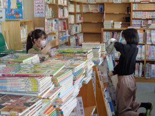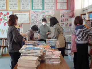 PTAの図書ボランティアの方々がたくさん来てくださっています。いつもありがとうございます。