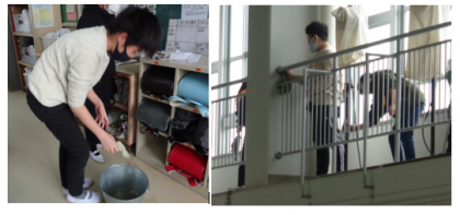 各教室のほうきの埃取り、扇風機の羽洗い、教室や体育館の清掃、階段の掲示物貼り替え等、学校のために精一杯掃除を頑張りました。