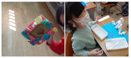 粘土で立体的な作品を作ったり、フォトフレームを作ったりしました!