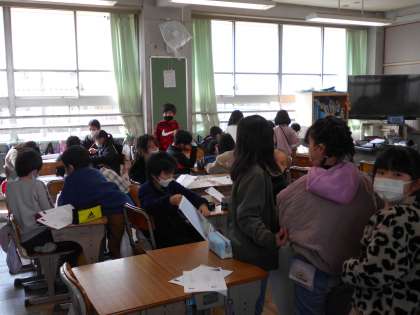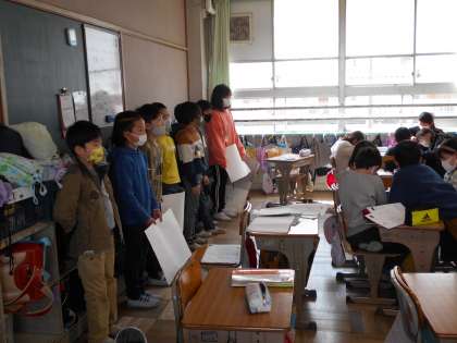わたしたちの学校じまんでは,給食や運動場とじまんしたいところのグループに分かれて発表に向けて練習しています。