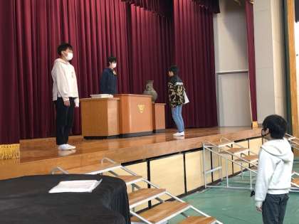 卒業式の練習では,卒業証書の受け取り方を練習しました。少し緊張しているように見えました。