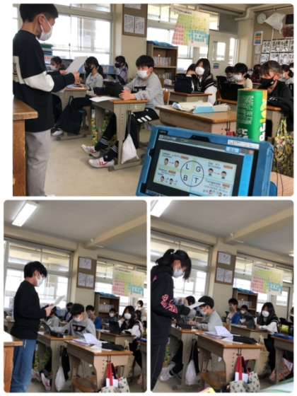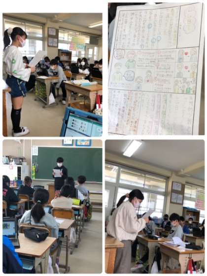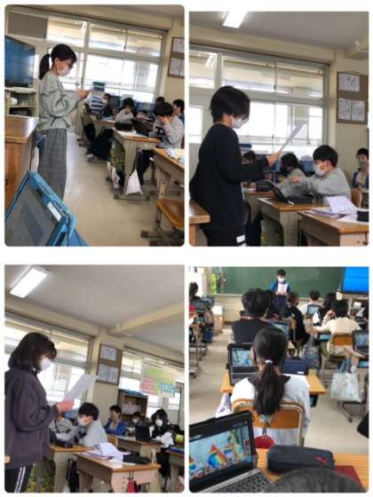 タブレットを使って,調べた写真を画面で見ながら友だちの発表を聞きました。