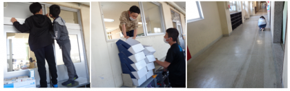 教師が安全を見守る中、高い所も掃除してくれています。綺麗になった教室。でも空っぽになった教室は、少し寂しいです。皆のいるにぎやかで楽しい教室が、やっぱり明るく感じます。