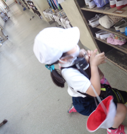 忘れ物の水筒に気付き、全部運動場まで持って行っていました。とても優しいです。自分で考えて行動する力が育ってきたね。
