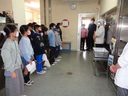 今日で今年度の給食が終わりました。給食委員会の5年生が代表で、調理員さんにお礼を言いました。毎日、おいしい給食を作ってくださり、ありがとうございました。