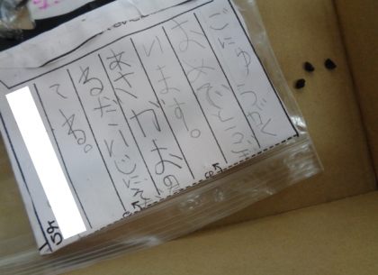 新1年生に、あさがおの種をプレゼントします。封筒を作りました。「大事に育ててね」と書きました。