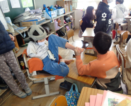 感染症対策をした上で、活動しました。友だちと楽しく過ごしていました。