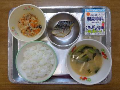 10月17日の給食は「ごはん、牛乳、みそ汁、卯の花、さばの塩焼き」でした。