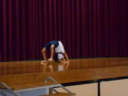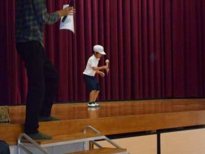 2日目の今日は、4年生と1年生が登場しました。お笑い、けん玉、体操、縄跳びなどいろんな発表がありました。発表し終わると、観客席からは大きな拍手が送られました。