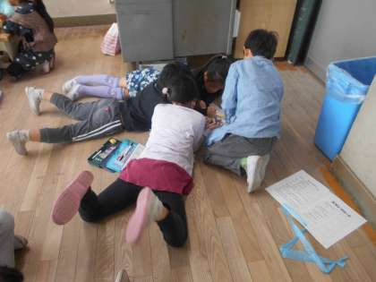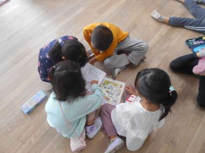 遠足グループに分かれて、どの順序で園内を周っていくかを話し合いました。