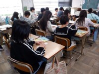 2組は算数のテストです。真剣に取り組んでいます。