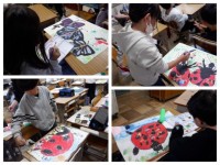 2組は図工で、かわいい「ふくろづめ」を作っています。