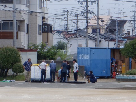 11月15日(土)本校で実施される「東浅香山校区ふれあい親子防災フェスティバル」の準備も兼ねて、資機材の確認や組み立て等をされていました。