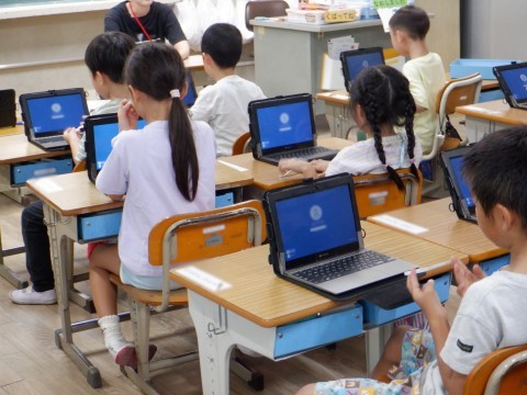 先生のお話をしっかり聞き、パスワードを入力していました。これからいろいろな学習活動に活用していきましょうね。