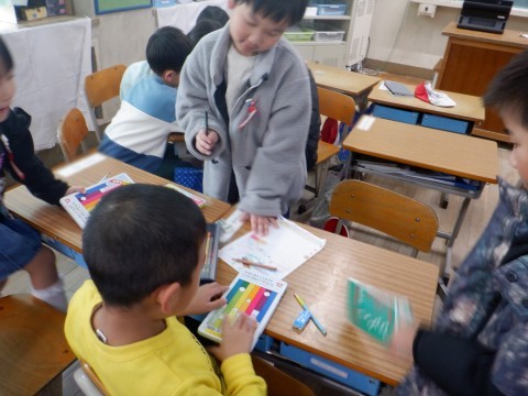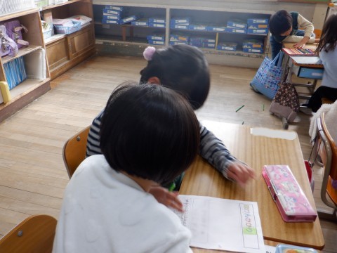 3学期の係活動の掲示物を同じ係の友だちと作っていました。
