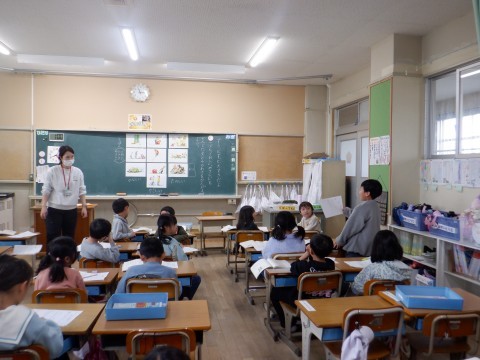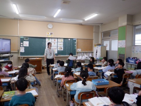 1年3組の国語では、1年生で学習してきた漢字の復習をしていました。