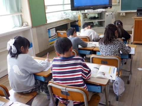 1年3組の国語では、1年生で学習してきた漢字の復習をしていました。