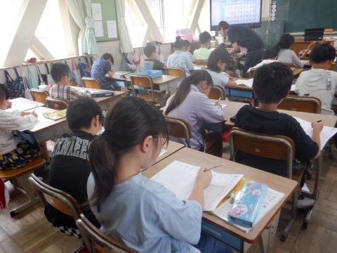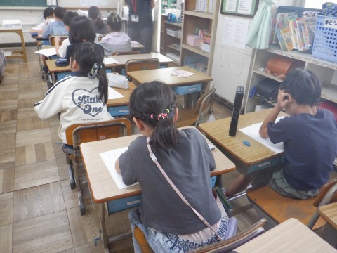 2校時め、1組も2組も漢字の小テストに取り組んでいました。