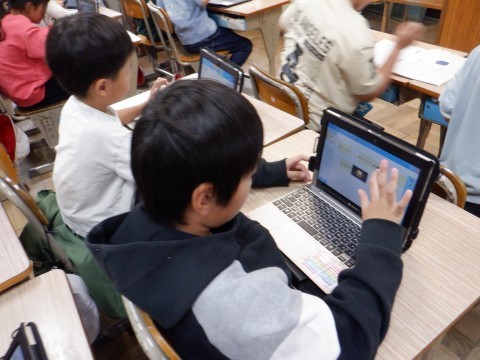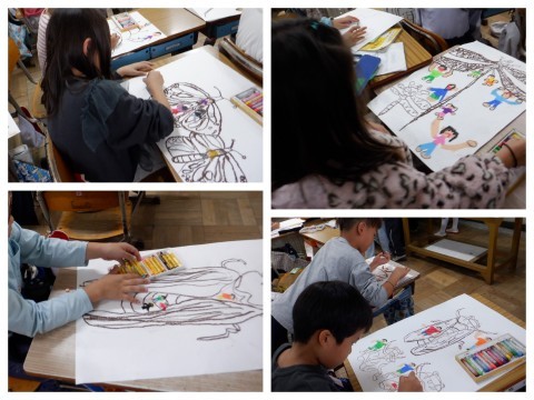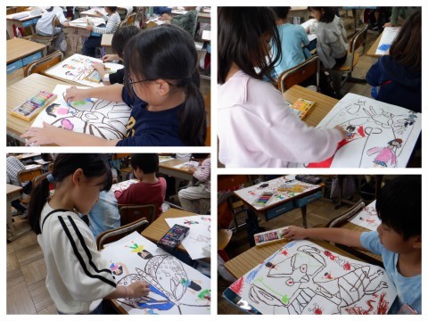国語の時間ですが図工や生活科と関連した授業で、子どもたちはいきいきと活動していました。