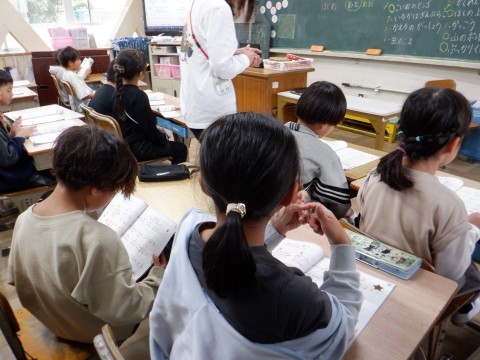 国語の時間ですが図工や生活科と関連した授業で、子どもたちはいきいきと活動していました。