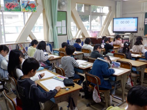 たくさんの先生たちが参観する中、子どもたちは学習に意欲的に取り組むことができていました。