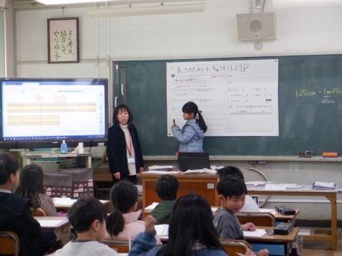2年1組の算数では「長さ」の学習を進めていました。