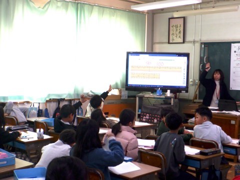 2年2組の音楽では、鍵盤ハーモニカで「こぐまの2月」の演奏練習をしていました。