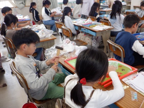 3年3組では、いよいよ釘打ちの作業に入るようです。