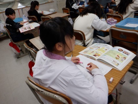 「すがたをかえる大豆」の学習を終えた3年生は、食べ物のひみつについて読む人に分かりやすい説明をする文章を書く学習活動に取り組んでいます。