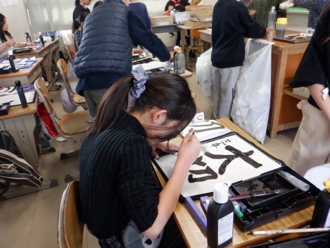 毛筆で「大切」の2文字を丁寧に書いていました。