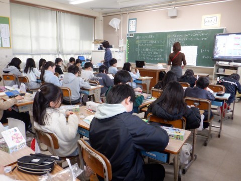 写真は1組と2組の授業風景です。